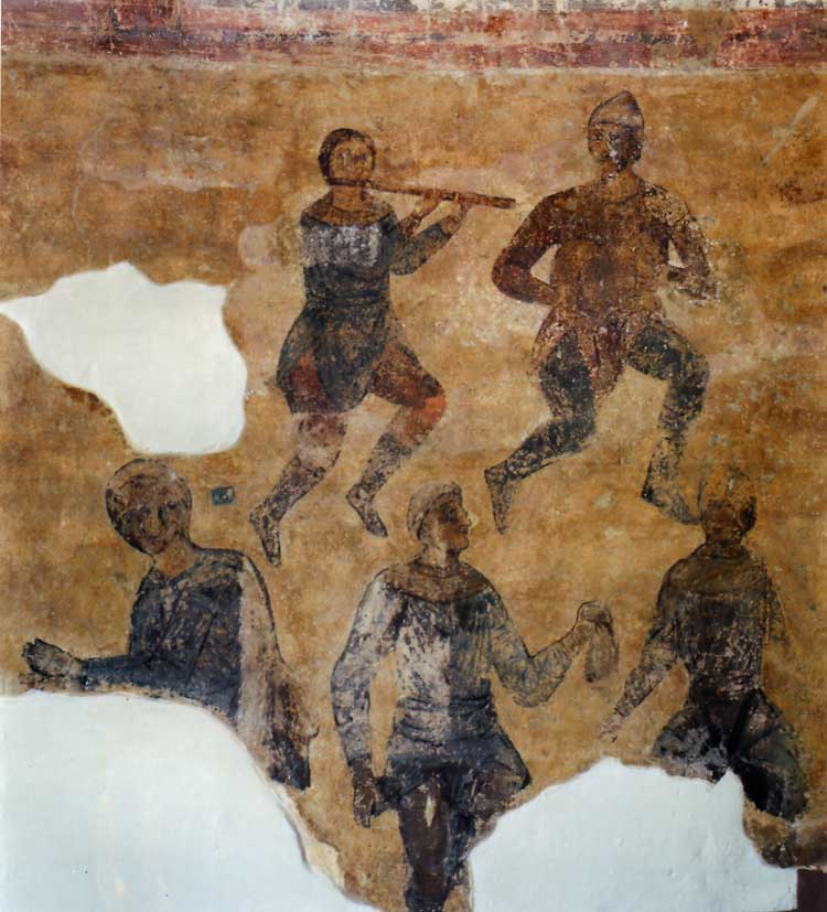 The transverse flute finally sauntered into Europe in the tenth century, making its first continental cameo. These instruments are depicted in Byzantine art, including church psalters and frescoes, such as those in the South Tower of the Hagia Sophia in Kiev, dating from the twelfth century. And what do we see? The flute strutting its stuff next to acrobats and musicians, held to the player’s left rather than the modern right-hand position.