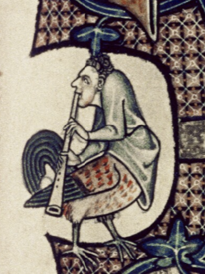But medieval images tell a less cooperative story. Here the pipe is frequently played one-handed, yes, but not gripped at its lower extremity in the manner later taken for granted. The hand wanders; the posture shifts. The implication is awkward but unavoidable: the familiar Renaissance layout of finger-holes may be an historical imposition rather than a continuity.