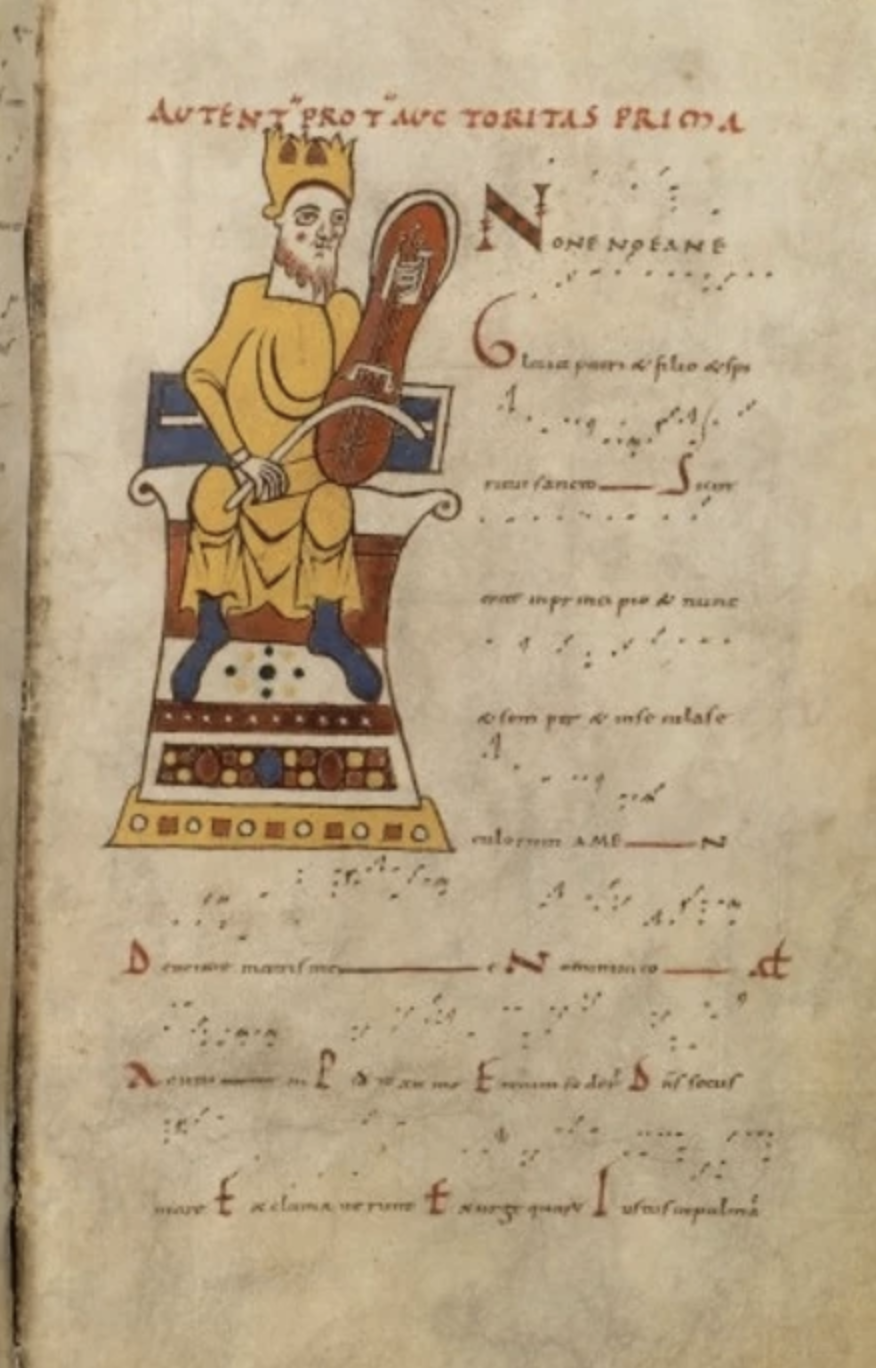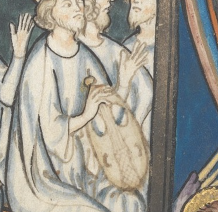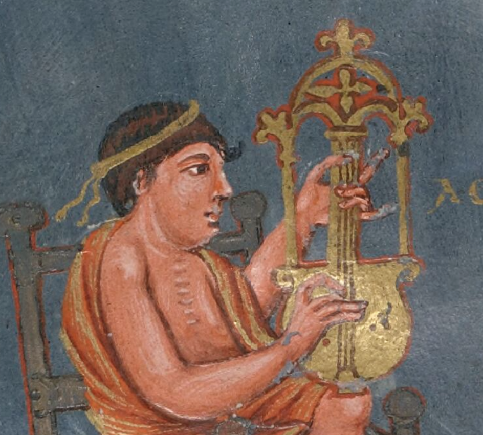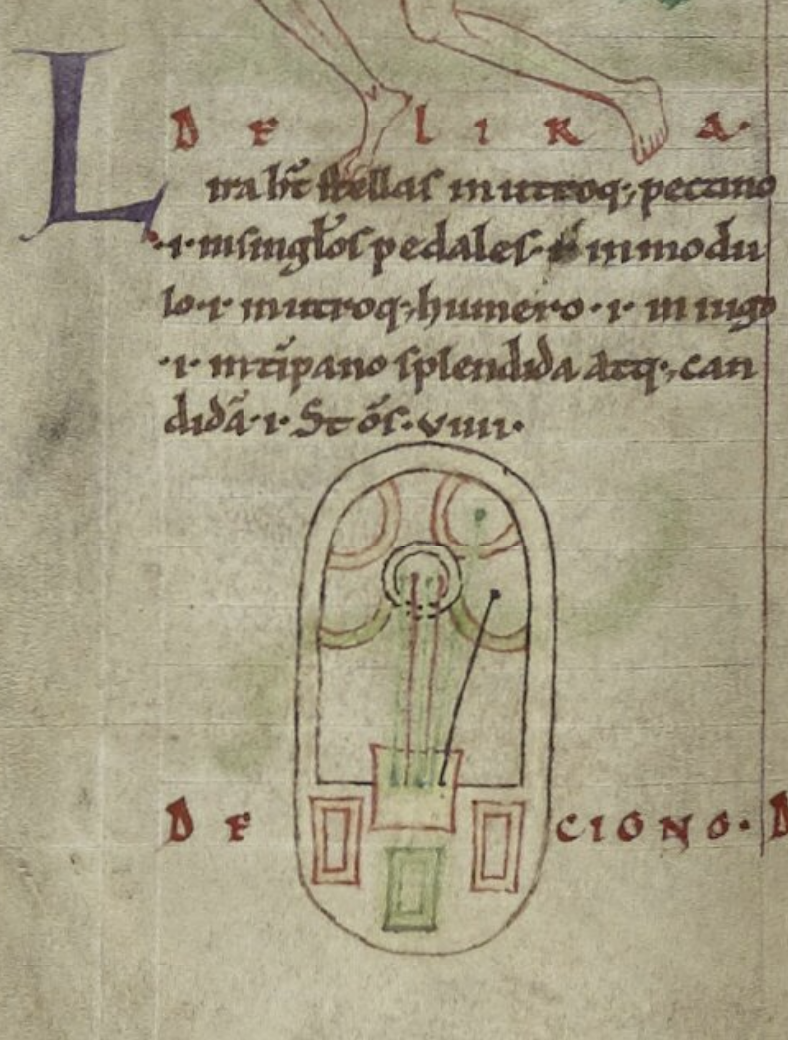 A lyre in Durham Cathedral Library, MS Hunter 100, f. 62v, eleventh-century.